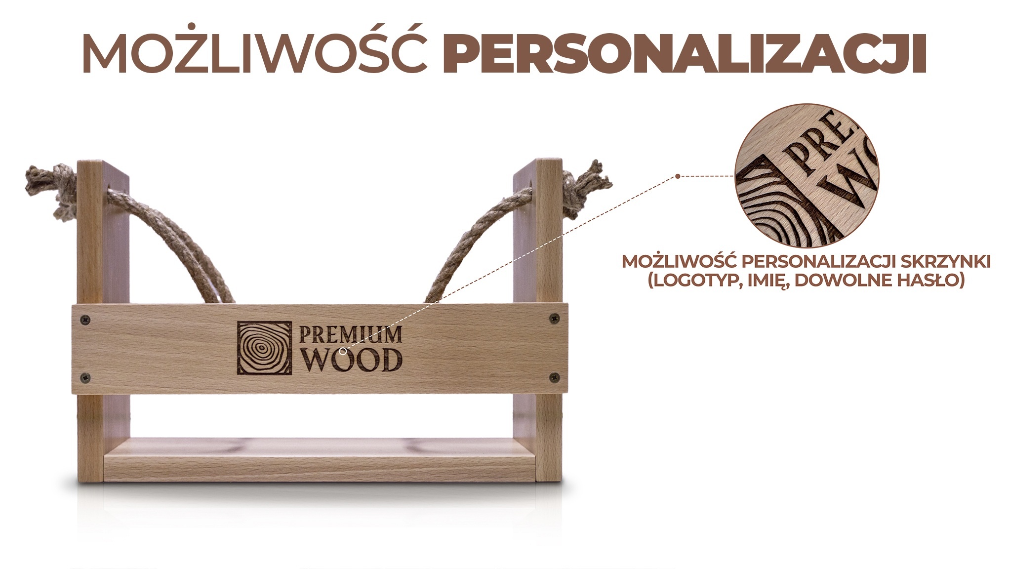 Każda skrzynka może zostać spersonalizowana poprzez precyzyjny grawer laserowy. Oferujemy możliwość umieszczenia logotypu, imienia dziecka lub dowolnego hasła, dzięki czemu produkt nabiera indywidualnego charakteru. Grawer wykonywany jest bezpośrednio w drewnie, co zapewnia jego trwałość i estetyczny, rzemieślniczy efekt. To doskonały wybór zarówno na wyjątkowy prezent oraz jako element identyfikacji marki.