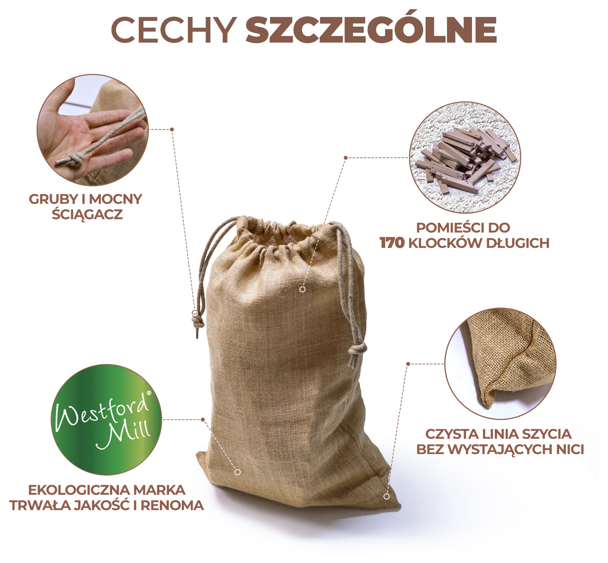 Zanim zdecydowaliśmy się na jutowe worki Westford Mill®, sprawdziliśmy tego typu produkt u innych producentów. Porównywaliśmy jakość materiału, sposób szycia, trwałość oraz estetykę wykonania. Tylko ten model spełnił nasze wymagania, dlatego świadomie wybraliśmy droższy, ale jednocześnie dużo trwalszy wyrób.